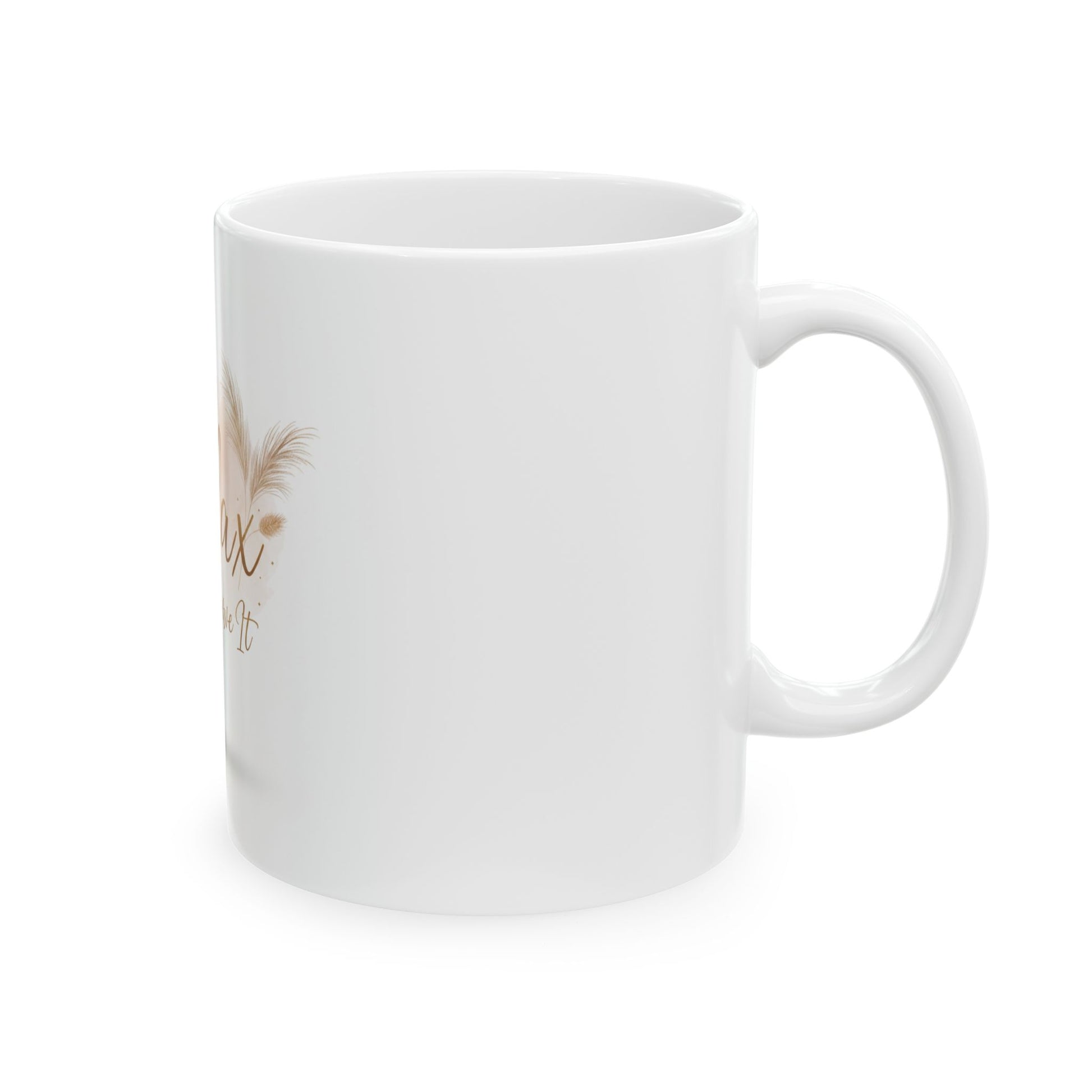 Elevate your daily ritual with a mug designed for moments of calm. Featuring a soft, elegant message that encourages you to pause and unwind, this ceramic mug brings comfort, warmth, and intention to every sip.